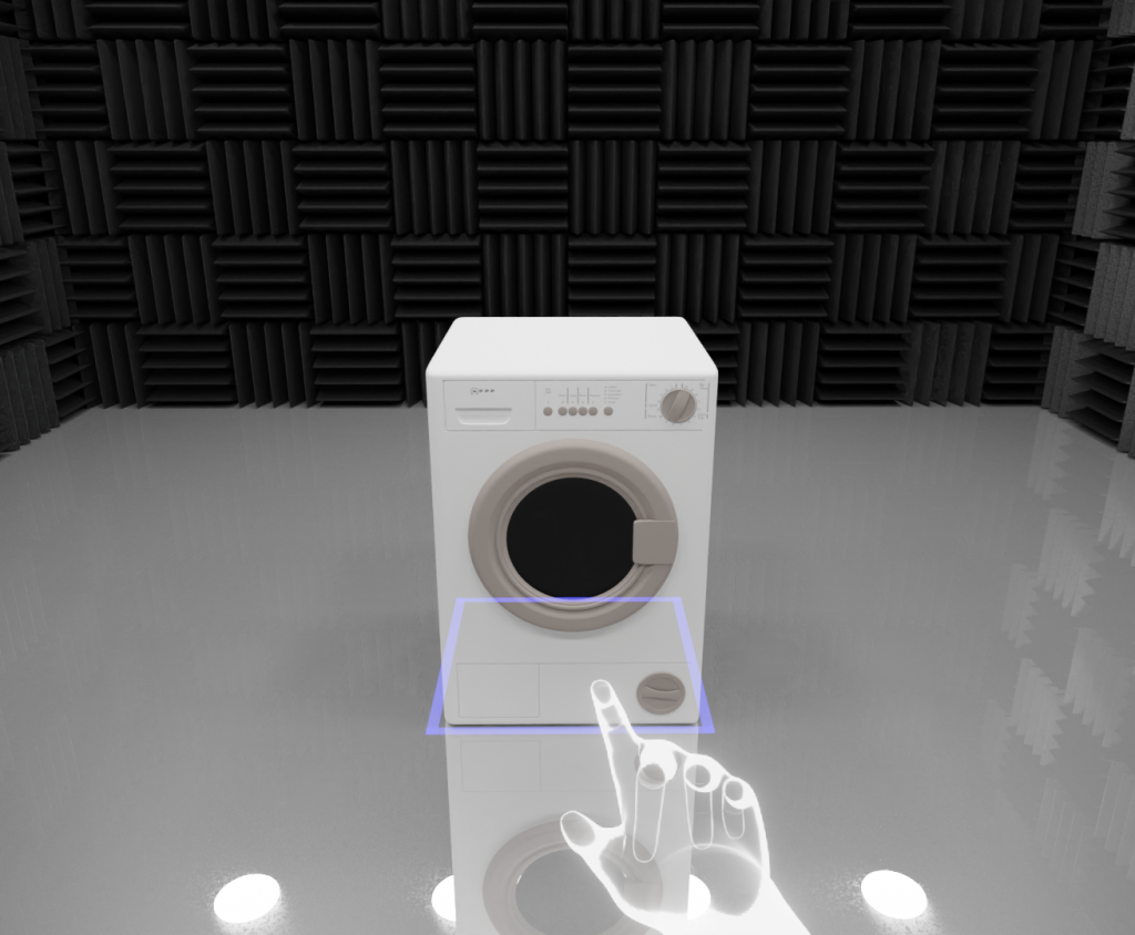 Nach erfolgreicher Datenübertragung, wird Ihnen ein in der HoloLens virtuelles Fenster mit der Aufforderung zum Platzieren des Bezugsquaders angezeigt. Klicken Sie auf diesen Button und strecken Sie eine Hand nach vorne. Ausgehend von Ihrer Hand erscheint nun ein Handstrahl, an dessen Spitze ein zwei-dimensionales Referenzrechteck zu sehen ist.  Dieses blaue Referenzrechteck folgt der Bewegung Ihrer Hand. Platzieren Sie das Rechteck so, dass es das Messobjekt umschließt und sich an der korrekten Position befindet (bzw. auf der richtigen Ebene im Raum). Nun können Sie die Position mit einem Airtap bestätigen. Bei einer korrekten Positionierung erscheint nun unmittelbar der dazugehörige räumliche Bezugsquader.